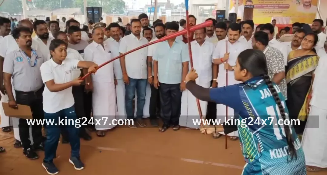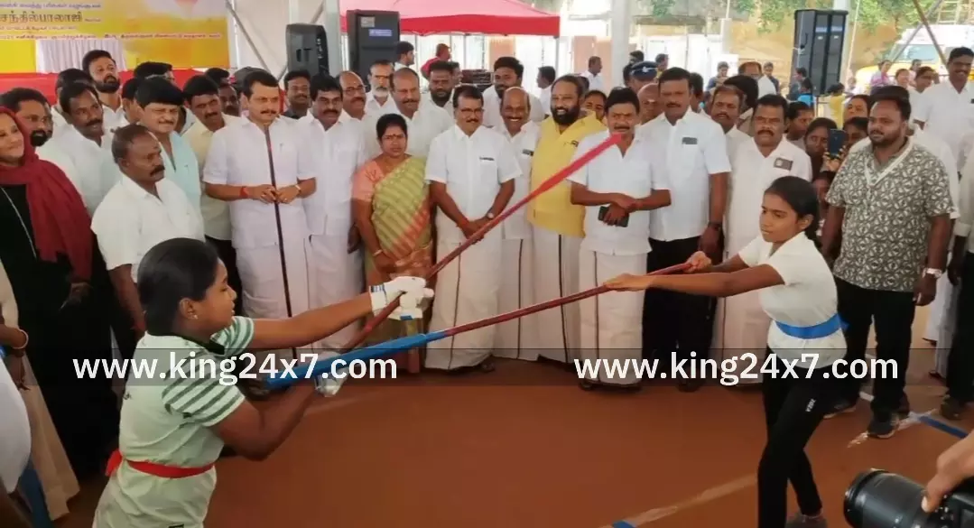 கரூர் மாவட்ட திமுக சார்பில் துணை முதல்வர் உதயநிதி ஸ்டாலின் 49 வது பிறந்தநாளை முன்னிட்டு பெண்களுக்கான சிலம்ப போட்டியை செந்தில் பாலாஜி துவக்கி வைத்தார்.