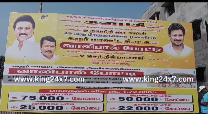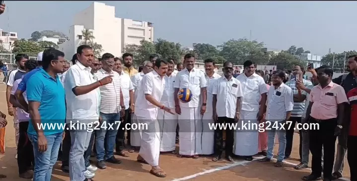 Karur King 24x7 |28 Dec 2025 1:24 PM ISTஉதயநிதி ஸ்டாலின் 49 வது பிறந்த நாளை முன்னிட்டு வாலிபால் போட்டியை பந்தை அடித்து துவக்கி வைத்தார் செந்தில் பாலாஜி.