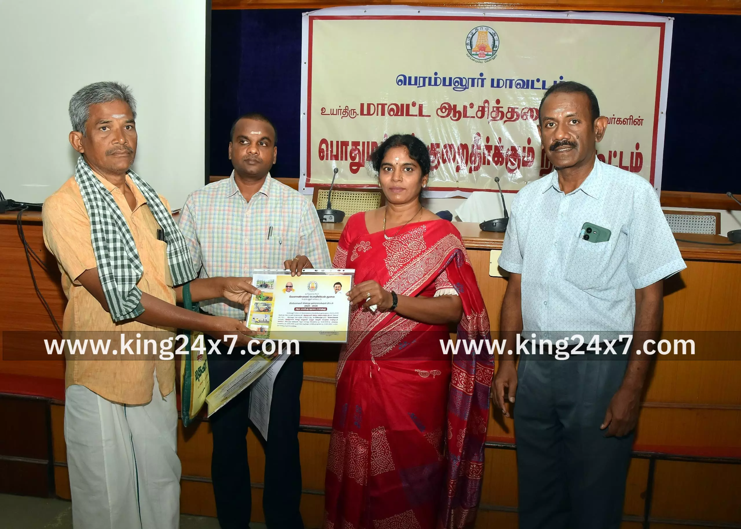 பெரம்பலூர் மாவட்ட ஆட்சியர் அலுவலக கூட்டரங்கில், மாவட்ட ஆட்சித்தலைவர் ந.மிருணாளினி தலைமையில், மக்கள் குறைதீர்க்கும் நாள் கூட்டம் இன்று (01.09.2025) நடைபெற்றது. கூட்டுறவுத்துறையின் சார்பில் 5 பயனாளிகளுக்கு ரூ.3,92,000 மதிப்பிலான பயிர் கடனுதவி மற்றும் கால்நடை பராமரிப்பு உதவித்தொகை, தமிழ்நாடு மின்சார வாரியம், பெரம்பலூர் சார்பில் 5 பயனாளிகளுக்கு பெயர் மாற்றத்திற்கான ஆணை, மீன்வளம் மற்றும் மீனவர் நலத்துறை சார்பில், 3 பயனாளிகளுக்கு மீனவர் நலவாரிய உறுப்பினர் அட்டை, வேளாண் பொறியியல் துறை சார்பில், வேளாண்மை இயந்திர மயமாக்கல் திட்டத்தின் கீழ் 5 பயனாளிகளுக்கு ரூ.14,46,290 மதிப்பில் கிணறு சுற்றுச்சுவர் அமைக்க நிதியுதவி மற்றும் வேளாண் இயந்திரங்கள், வேளாண் விற்பனை மற்றும் வேளாண் வணிகத்துறை சார்பில் 02 பயனாளிகளுக்கு உழவர் சந்தை அடையாள அட்டை மற்றும் 1 பயனாளிக்கு உழவர் சந்தையில் இயற்கை வேளாண் விளைபொருட்கள் விற்பனைக்கு கடை ஒதுக்கீட்டிற்கான ஆணை என மொத்தம் 22 பயனாளிகளுக்கு ரூ.18,38,290 மதிப்பிலான பல்வேறு அரசு நலத்திட்ட உதவிகளை மாவட்ட ஆட்சித்தலைவர் அவர்கள் வழங்கினார். தொடர்ந்து, மாண்புமிகு முதலமைச்சரின் தனிப்பிரிவு மனுக்கள், மாண்புமிகு அமைச்சர் பெருமக்கள் கலந்து கொண்ட நிகழ்ச்சிகளில் பொதுமக்கள் வழங்கிய கோரிக்கை மனுக்கள், மக்கள் தொடர்பு திட்ட முகாம்கள் மற்றும் கடந்த வாரங்களில் நடைபெற்ற மக்கள் குறைதீர்க்கும் நாள் கூட்டங்களில் பொதுமக்களிடமிருந்து பெறப்பட்ட மனுக்களுக்கு எடுக்கப்பட்ட நடவடிக்கைகள் குறித்தும், ஒரு மாதத்திற்கு மேலாக நடவடிக்கை எடுக்கப்படாத மனுக்களின் விவரங்களையும், சம்பந்தப்பட்ட துறை அலுவலர்களிடம் மாவட்ட ஆட்சித்தலைவர் அவர்கள் விரிவாக ஆய்வு மேற்கொண்டார். குறிப்பாக உங்களுடன் ஸ்டாலின் முகாம்களில் வழங்கப்பட்ட மனுக்கள் மீது எடுக்கப்பட்டுள்ள நடவடிக்கை குறித்து விரிவாக ஆய்வு செய்த மாவட்ட ஆட்சித்தலைவர் அவர்கள் தகுதியுடைய அனைவருக்கும் அரசின் நலத்திட்ட உதவிகள் கிடைக்கப்பெறுவதை சம்பந்தப்பட்ட துறை அலுவலர்கள் உறுதி செய்திட வேண்டும் என தெரிவித்தார். தொடர்ந்து, முதியோர் உதவித்தொகை, மாற்றுத்திறனாளிகள் உதவித்தொகை, தொழில் தொடங்க கடன் உதவி, வீட்டுமனைப்பட்டா, விதவை உதவித்தொகை, ஆதரவற்றவற்றோர் உதவித்தொகை, பட்டா மாறுதல், கல்விக் கடன் கோருதல், இலவச தையல் இயந்திரம் கோருதல், கலைஞர் மகளிர் உரிமை தொகைத் திட்டம், கலைஞர் கனவு இல்லம் திட்டம், அடிப்படை வசதிகள் கோருதல் உட்பட பல்வேறு கோரிக்கை மனுக்களை பொதுமக்களிடமிருந்து பெற்றுக் கொண்ட மாவட்ட ஆட்சித்தலைவர் அவர்கள், விரைந்து நடவடிக்கை மேற்கொள்ளவும், மாற்றுத்திறனாளிகள் மனுக்