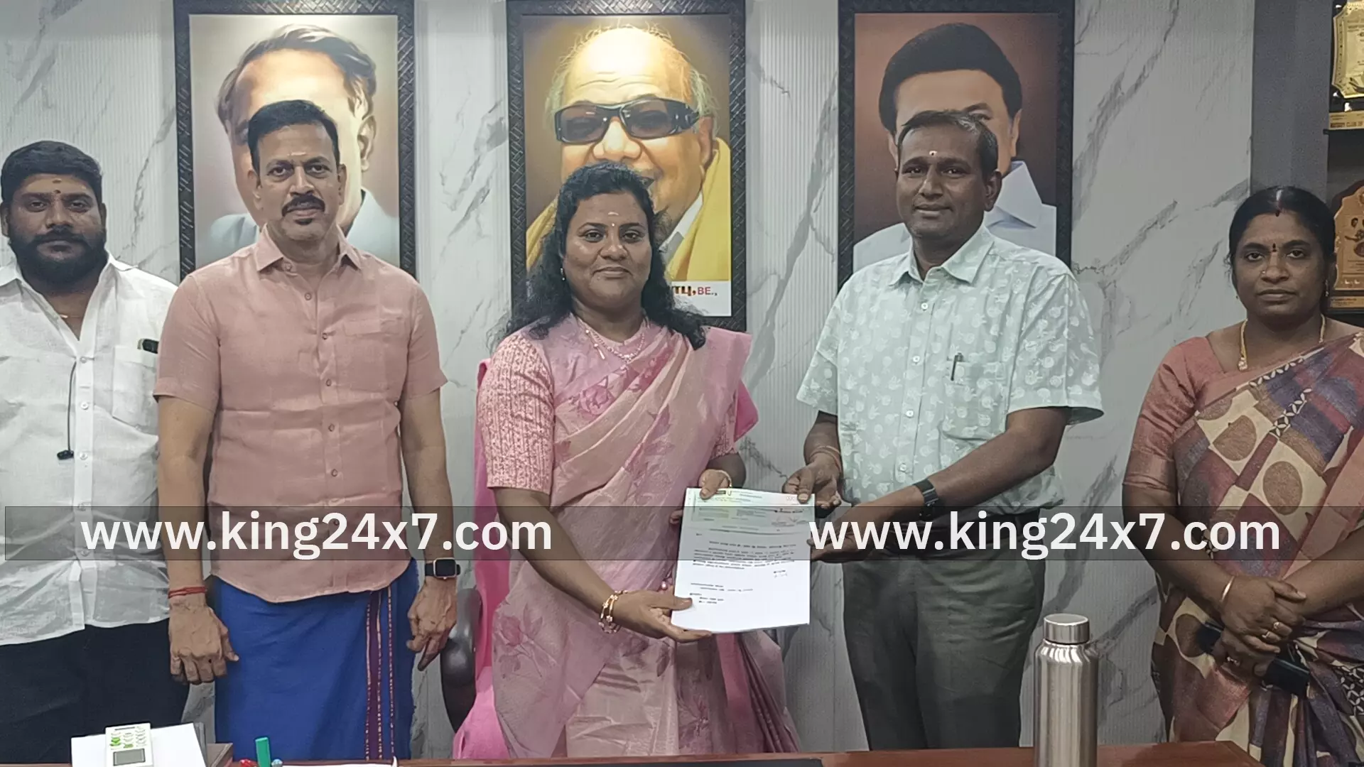 மழைநீர் வடிகால் அமைக்க நமக்கு நாமே திட்டத்தில் பொது மக்களின் பங்களிப்பு தொகை ரூ இரண்டு லட்சத்து 59 ஆயிரத்திற் கான வரைவோலை நகர் மன்ற தலைவர் நளினி சுரேஷ் பாபு ஆணையாளர் வாசுதேவன்