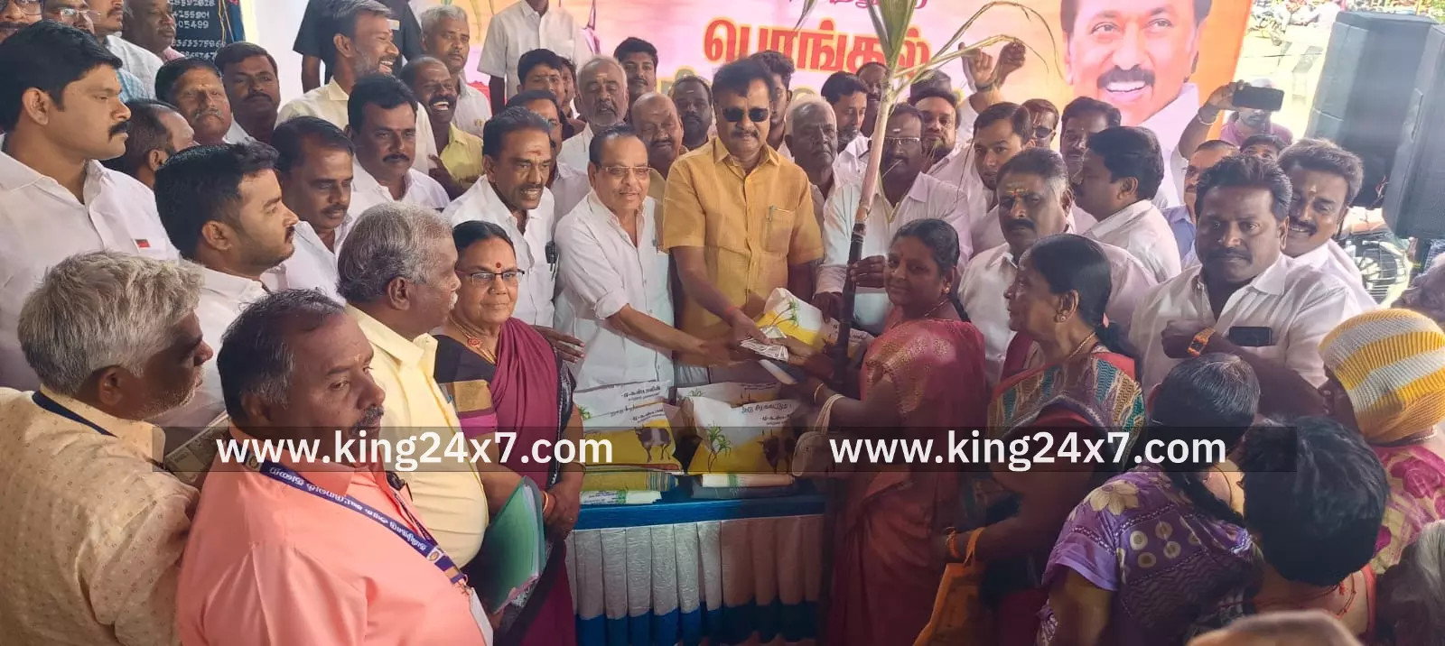 ஆரணியில் 86ஆயிரத்து 52 குடும்ப அட்டைதாரர்களுக்கு பொங்கல் தொகுப்பு பொருட்களுடன் ரொக்கப்பரிசு ரூ.3000 வழங்கும் திட்டத்தினை ஆரணியில் நாடாளுமன்ற உறுப்பினர் எம்.எஸ்.தரணிவேந்தன் துவக்கி வைத்தார். தமிழ்நாட்டு முதலமைச்சர் மு.க.ஸ்டாலின் தமிழ்நாடு முழுவதும் 2 கோடியே 22 லட்சத்து 91 ஆயிரத்தி 710 குடும்பங்களுக்கும் ஒரு கிலோ அரிசி, ஒரு கிலோ சர்க்கரை, ஒரு கரும்பு மற்றும் ரூபாய் 3000 உள்ளிட்ட பொங்கல் பரிசு தொகுப்பு வழங்குகிற நிகழ்ச்சியை சென்னையிலே தொடங்கி வைத்தார். இதன் தொடர்ச்சியாக ஆரணி வட்டத்தில் உள்ள குடும்ப அட்டைதாரர்களுக்கு ஆரணி அண்ணாசிலை அருகில் வைகை கூட்டுறவு பண்டகசாலையில் பொங்கல் தொகுப்பு பொருட்கள் மற்றும் ரொக்கம் ரூ.,3ஆயிரம் ஆகியவற்றை ஆரணி நாடாளுமன்ற உறுப்பினர் எம்.எஸ்.தரணிவேந்தன் வழங்கி துவக்கி வைத்தார். மேலும் ஆரணி அடுத்த விண்ணமங்கலம், சேவூர் ஆகிய கிராமங்களிலும் பொங்கல் தொகுப்பு பொருட்களை கொடுத்து துவக்கி வைத்தார். ஆரணி வட்டத்தில் மொத்தம் 86 ஆயிரத்து 52 குடும்ப அட்டைதாரர்களுக்கு தொடர்ந்து பொங்கல் வரை தொகுப்பு பொருட்கள் வழங்கப்படும் என்று எம்.பி தெரிவித்தார். உடன் முன்னாள் எம்எல்ஏ ஆர்.சிவானந்தம், மாவட்ட மகளிர் அணி லலிதா சண்முகசுந்தரம் ஆரணி நகரமன்ற தலைவர் ஏ.சி.மணி, மாவட்டதுணை செயலாளர் ஜெயராணிரவி, நகரபொறுப்பாளர் சைதை வ.மணிமாறன், ஒன்றியசெயலாளர்கள் எஸ்.எஸ்.அன்பழகன், சுந்தர், துரைமாமது, மோகன் உள்ளிட்ட பலர் கலந்துகொண்டனர்.