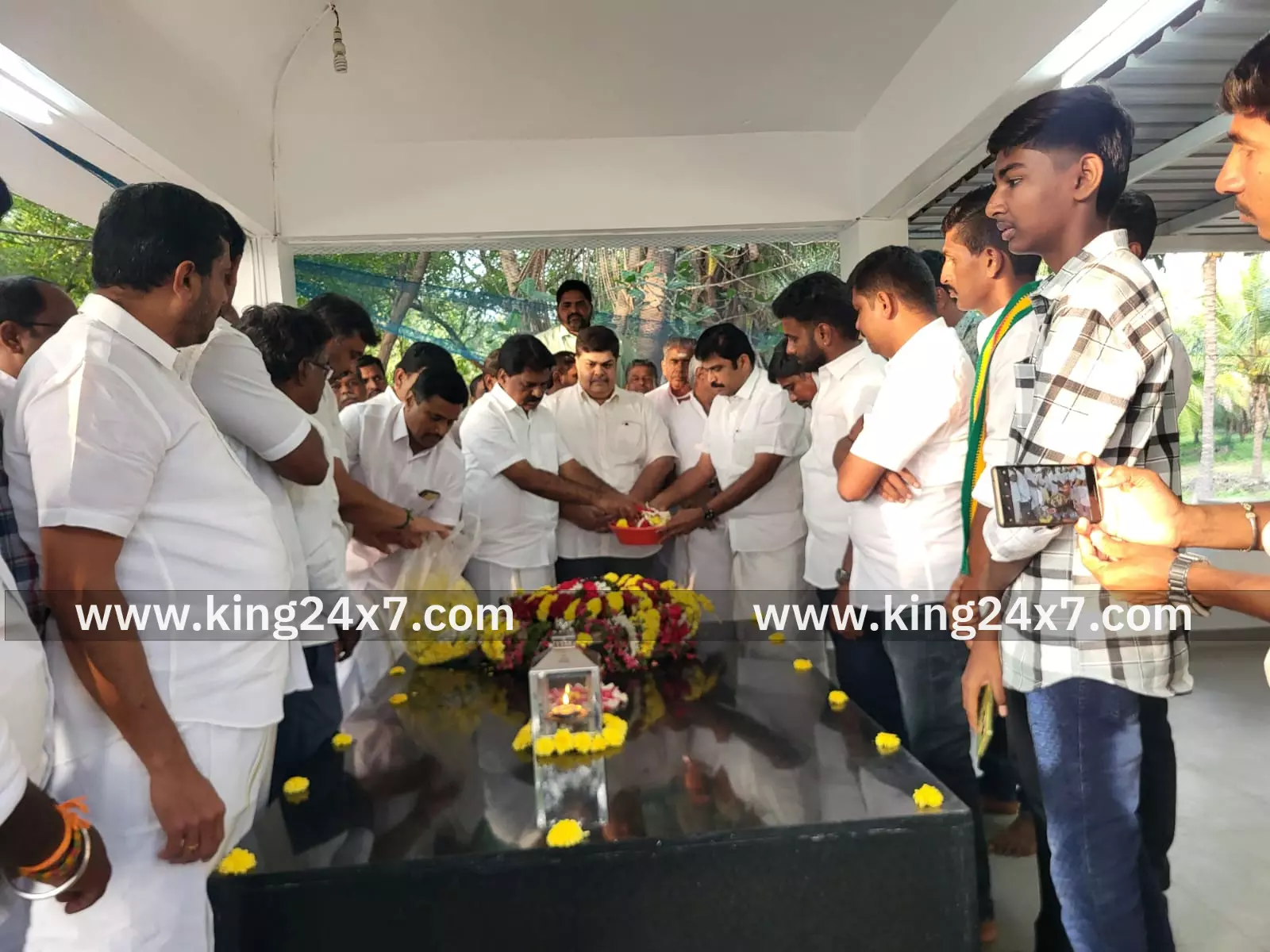 Kangeyam King 24x7 |30 Dec 2025 9:30 AM ISTகாங்கேயம் அடுத்துள்ள குங்காருபாளையத்தில் கொங்கு வேளாளக் கவுண்டர்கள் பேரவையின் நிறுவனரும்,முன்னாள் சட்டமன்ற உறுப்பினருமான கோவை செழியனின் 95 வது பிறந்த நாளை முன்னிட்டு கொங்கு நாடு மக்கள் தேசிய கட்சி பொதுச்செயலாளரும் திருச்செங்கோடு எம்.எல்.ஏ ER.ஈஸ்வரன் தலைமையில் மலர் தூவி மரியாதை செலுத்தப்பட்டது.