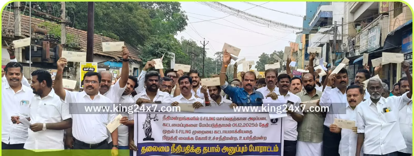 திண்டுக்கல்லில் வழக்கறிஞர்கள் E-Filing-ஐ முழுமையாக நிறுத்தி வைக்க கோரி பதிவு தபால் அனுப்பினர்