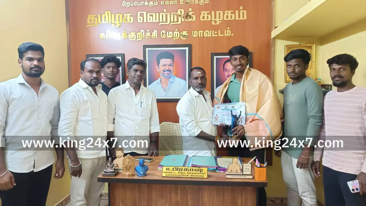 கள்ளக்குறிச்சி: ஆணழகன் போட்டியில் மூன்றாம் இடம் வெற்றி பெற்ற TVKநிர்வாகிக்கு மாவட்ட செயலாளர் மரியாதை....