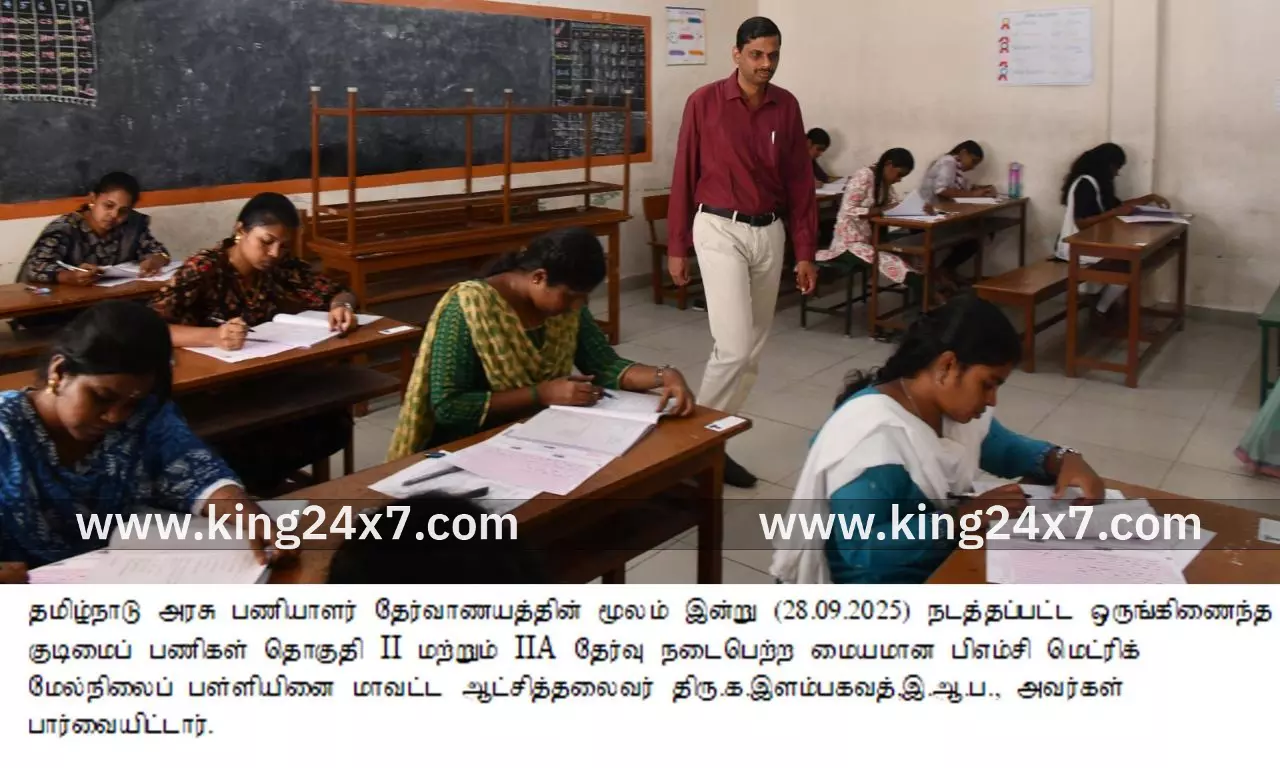 தமிழ்நாடு அரசு பணியாளர் தேர்வாணையத்தின் மூலம் இன்று (28.09.2025) நடைபெற்ற ஒருங்கிணைந்த குடிமைப் பணிகள் தொகுதி II மற்றும் IIA தேர்வு நடைபெற்றது. இதற்கான தேர்வு மையமான பிஎம்சி மெட்ரிக் மேல்நிலைப் பள்ளியை மாவட்ட ஆட்சித்தலைவர் திரு. க. இளம்பகவத், இ.ஆ.ப., அவர்கள் நேரில் சென்று பார்வையிட்டார். தேர்வு நடைபெறும் மையத்தில் செய்யப்பட்டுள்ள ஏற்பாடுகள், எழுத வந்திருந்த தேர்வர்கள் மற்றும் தேர்வின் நடைமுறை குறித்து ஆட்சித்தலைவர் ஆய்வு மேற்கொண்டார்.