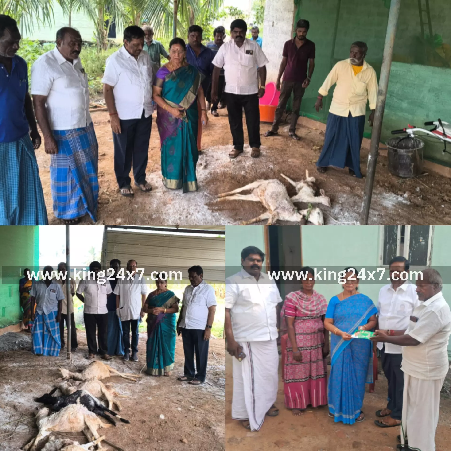 Rasipuram King 24x7 |10 Nov 2025 7:04 PM ISTநாமக்கல் மாவட்டம் ராசிபுரம் அடுத்த பட்டணம் பேரூராட்சி முருகன் கோவில் 12.வது வார்டு பகுதியைச் சேர்ந்தவர் சிவக்குமார், 45. விவசாயியான இவர் தனது கொட்டகையில் 8 ஆடுகள்; 7 பசு மாடுகள் மற்றும் பசு கன்று குட்டி ஒன்று வளர்த்து வருகிறார். இவர், அருகே உள்ள பகுதியில் ஆடுகளை மேய்த்து மாலை நேரத்தில் ஆடு, மாடுகளை கொட்டகையில் அடைப்பது வழக்கம். இந்நிலையில் நேற்று இரவு 10 மணி அளவில் ஆடு மாடுகளை கொட்டகையில் அடைத்து அருகே உள்ள அவரது வீட்டிற்கு சென்றுள்ளார். நேற்று நள்ளிரவு அந்த கொட்டகைக்குள் புகுந்த வெறிபிடித்த தெருநாய்கள் அங்கிருந்த ஆடுகளை கடித்து குதறியுள்ளது. இந்நிலையில், வழக்கம்போல் காலை கொட்டகையை பார்த்த போது, 8 ஆடு உயிரிழந்தது தெரிய வந்தது. மேலும், பசு கன்று குட்டி உடலில் காயம் ஏற்பட்டு குடல்கள் வெளியே வந்த நிலையில் உயிருக்கு போராடிக் கொண்டு இருந்தன. ஆடுகள் இறந்து கிடப்பதை கண்டு அதிர்ச்சி அடைந்து, கண்ணீர் விட்டு விவசாயி கதறி அழுதார். இதனை அறிந்த அதிமுக முன்னாள் அமைச்சர் டாக்டர் வெ. சரோஜா, அவர்கள் நேரில் சென்று விவசாயி சிவக்குமாரை சந்தித்து ஆறுதல் கூறினார். மேலும் அவர்கள் வாழ்வாதாரத்தை மேம்படுத்த உதவி தொகை வழங்கினார். இதில் அதிமுக பட்டணம் பேரூர் கழகச் செயலாளர் கே.பாலசுப்பிரமணியம், மற்றும் கட்சி நிர்வாகிகள் பலர் உடன் இருந்தனர். மேலும் தெரு நாய்களைக் கட்டுப்படுத்த பட்டணம் பேரூராட்சி நிர்வாகம் உரிய நடவடிக்கை எடுக்க வேண்டுமென அப்பகுதி விவசாயிகள், பொதுமக்கள் கோரிக்கை விடுத்துள்ளனர்..